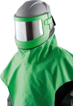 Das vergrößerte Visier verschafft dem Arbeiter einen noch besseren Rundumblick, welches ebenso mit Innen-, Außen- und Abreisscheiben ausgestattet ist.